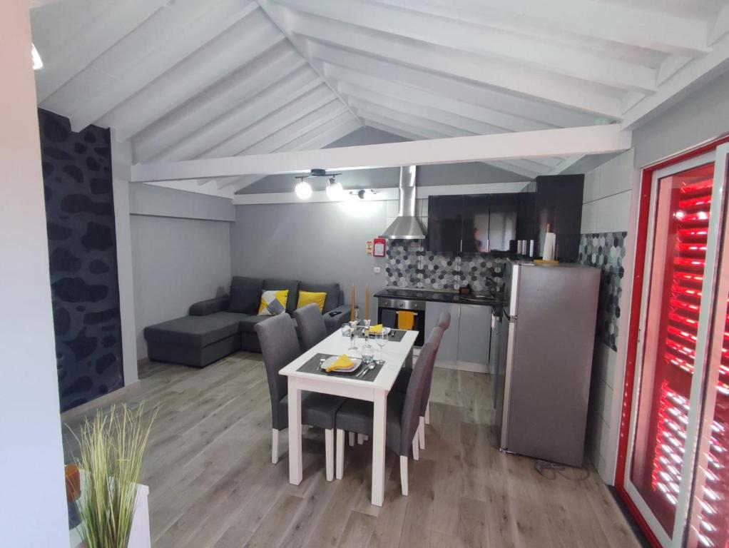 Um espaço mais amplo, perfeito para famílias ou grupos pequenos. Dispõe de dois quartos de cama, sala de estar, cozinha totalmente equipada e casa de banho privativa. O terraço, exclusivo deste primeiro andar, oferece vistas privilegiadas sobre o mar, as vinhas e a paisagem vulcânica do Pico.